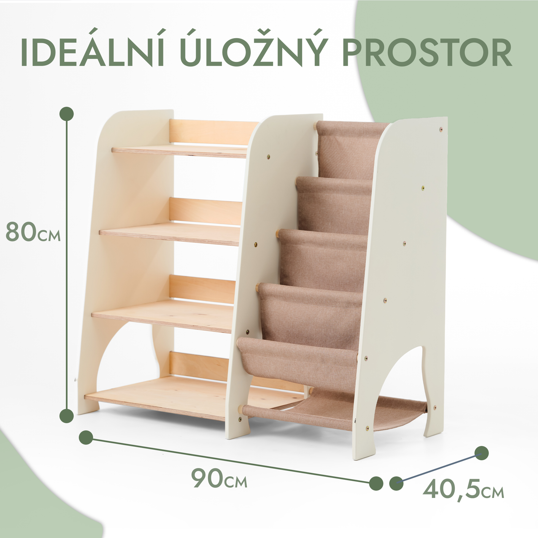 Dřevěné police Montessori 2v1: Knihovnička a police na hračky